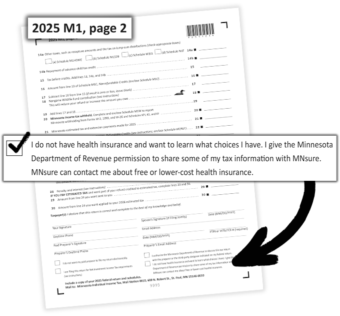 Get started by simply checking the MNsure box on your state income tax form.