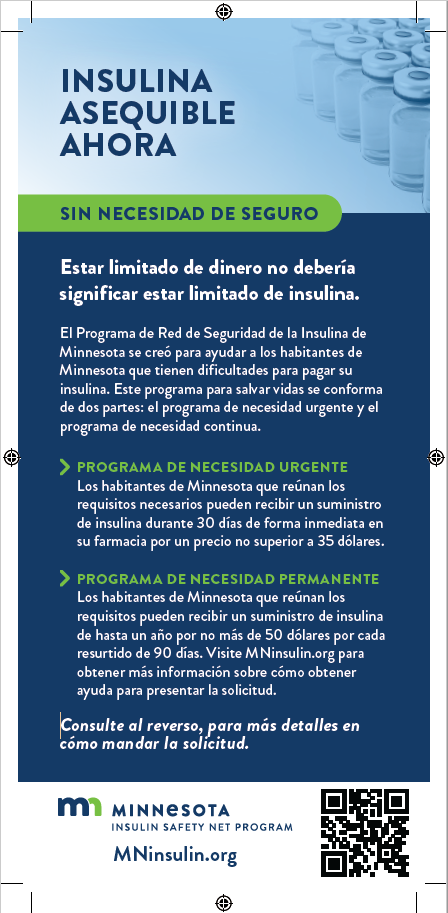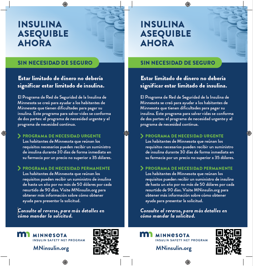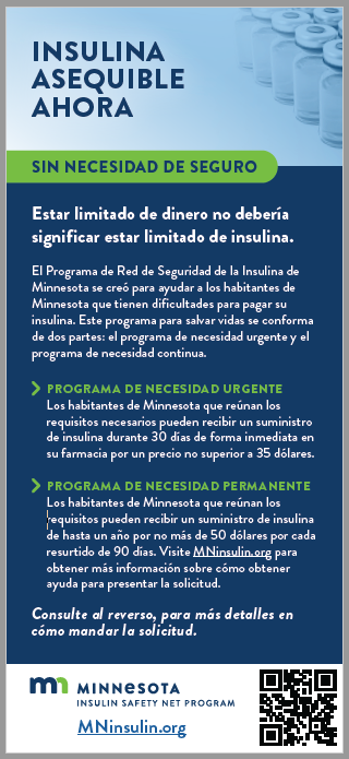 Alentamos a las personas que trabajan con personas dependientes de la insulina en Minnesota a que descarguen e impriman estos recursos y los exhiban en sus instalaciones.